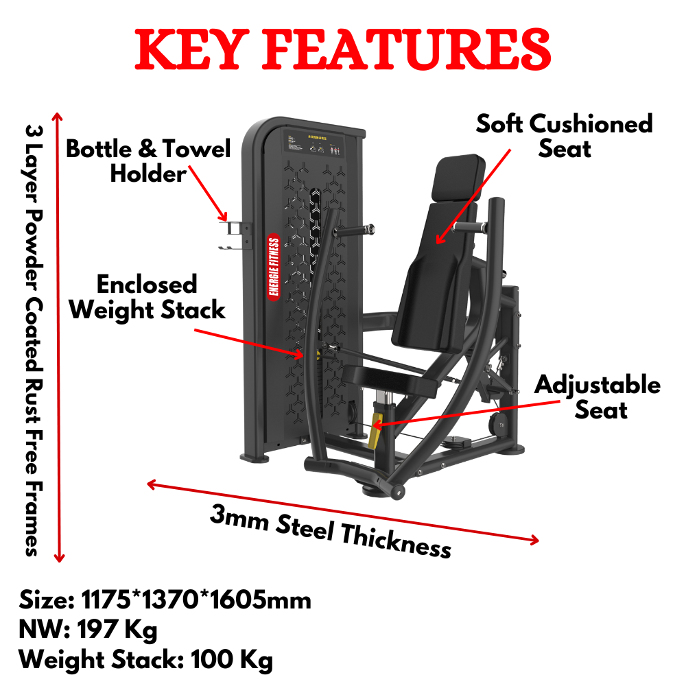Our seated chest press machine for sale has a durable frame made with 3mm reinforced metal which provides ideal strength for all types of exercises.Ā Ā