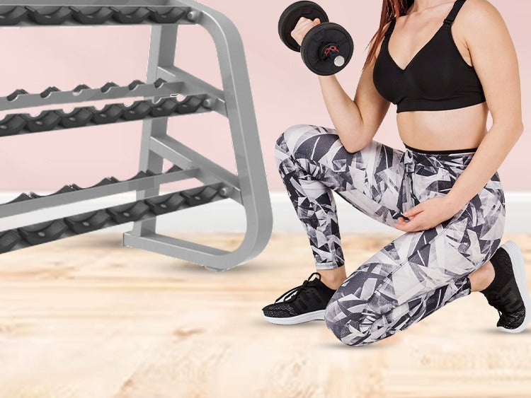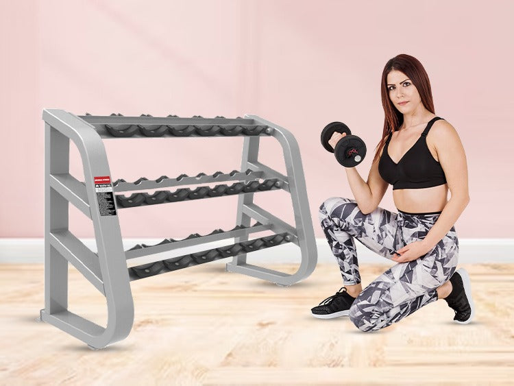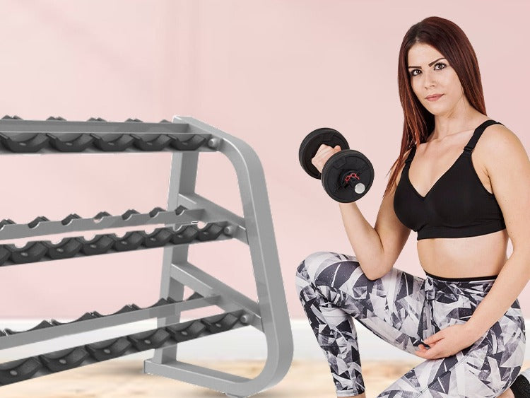 ER-967 Beauty Dumbbell Rack has a robust steel frame for reliable dumbbell organization. It can hold multiple heavy-weighing dumbbells without tripping.