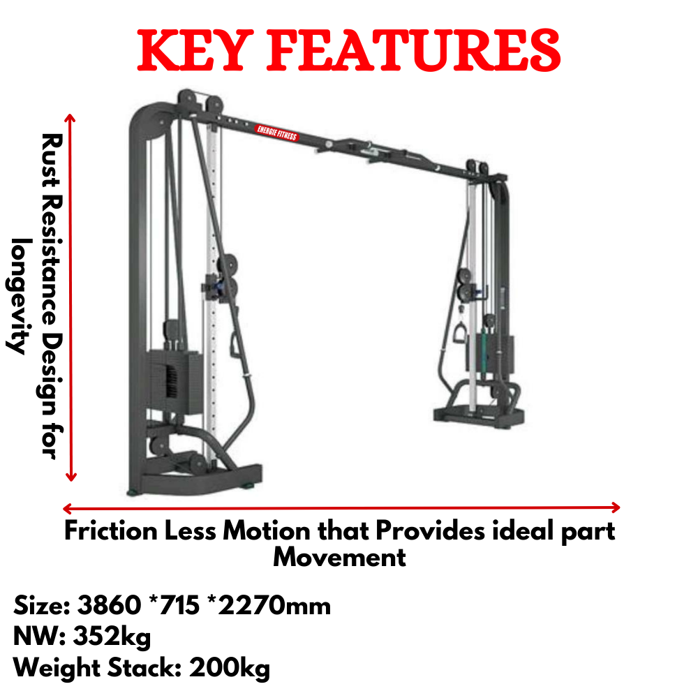 ETB-16 Adjustable Crossover machine has an import-quality and sturdy frame for withstanding the pressure of rigorous training. It is precision crafted with alloy metal for stability.Ā