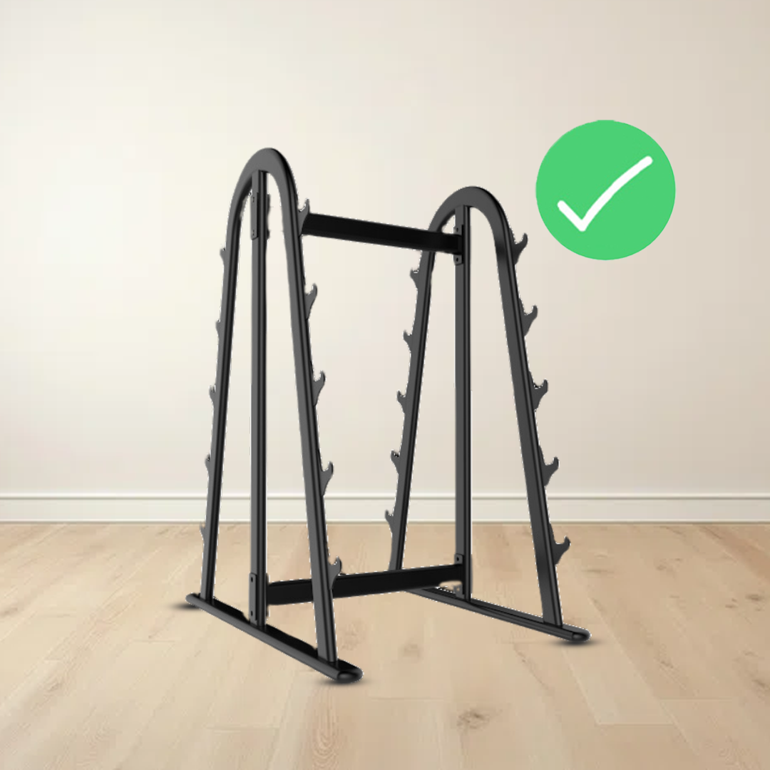 Our barbell storage rack is equipped with multiple safety J hooks that help to hold the weight in place and also prevent these weights from rolling off the stand.