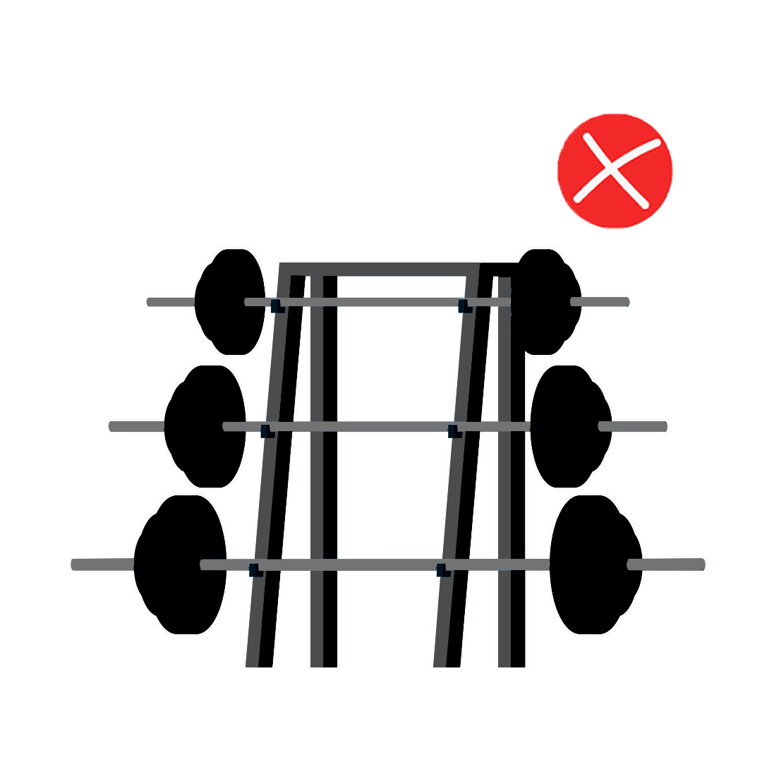This weight rack has 5 storage slots on each side to hold barbells. The design maximizes the use of space and helps you to store more barbells on a single rack.