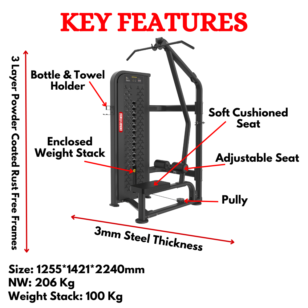 Energie Fitness Heavy Duty High Pulley Machine has an all metal frame that has been crafted specifically to support exercises and training in demanding gyms or fitness centres.