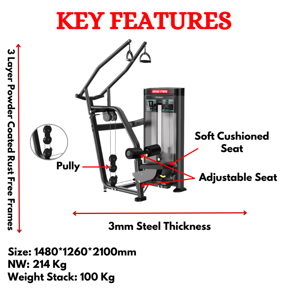 The ESB-12 Lat Pulldown machine for back has a durable and premium quality design that makes it suitable for use in gyms where workout machines need to be high in strength for flawless training.