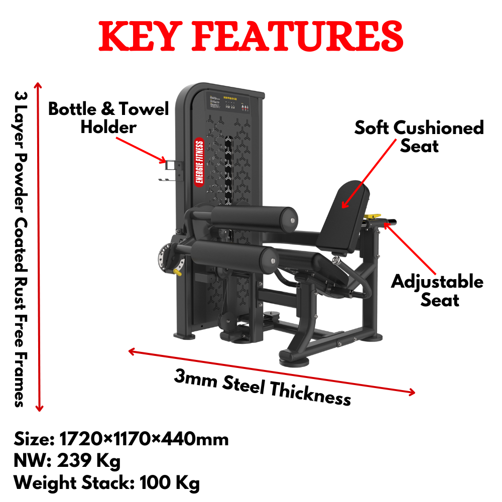 Lastly, this Energie Fitness leg extension machine comes with triple layer, rust-proof powder coating that helps it to last longer against sweaty and rugged conditions of a gym.