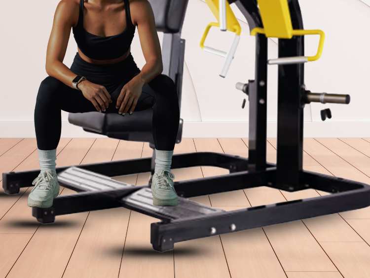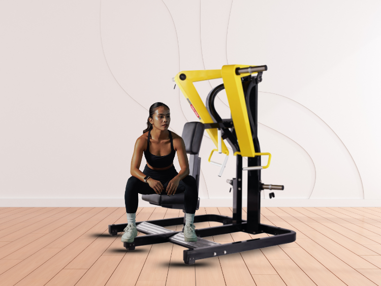 This plate loaded low row training machine allows users to choose a custom weight intensity. Users can choose an intensity by shifting the number of weight plates according to their fitness level.