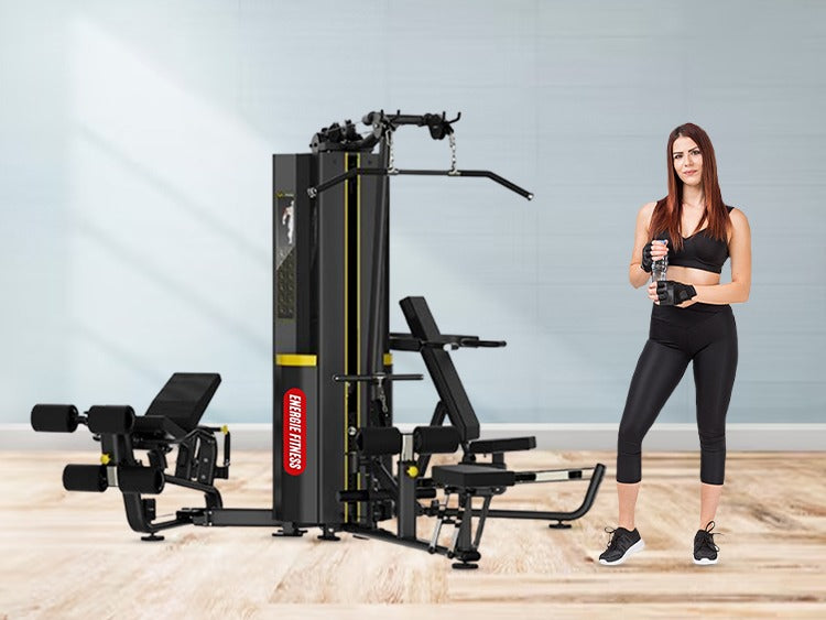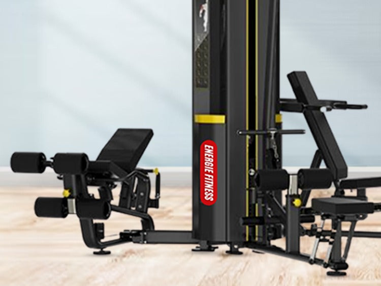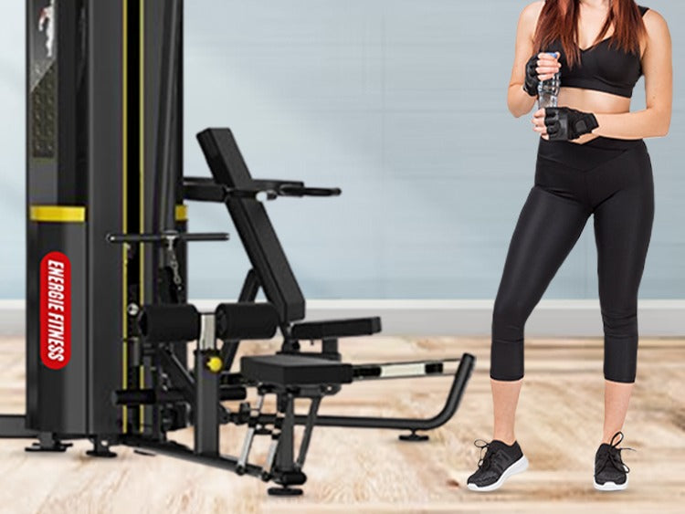 Energie Fitness multi station home gym equipment offers flexible fitness with a seamless workout experience. You can indulge in a variety of exercises such as seated shoulder press, pulley rowing, incline chest press, leg curl, and more with a superior performance setup.