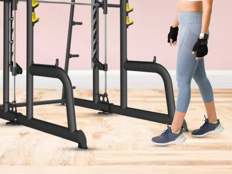 This Smith with squat machine allows users to work out with versatility. To be precise, it helps in isolated and targeted muscle training for the core, the upper body, arms, and legs. You can choose a workout style and uplift to your fitness game.