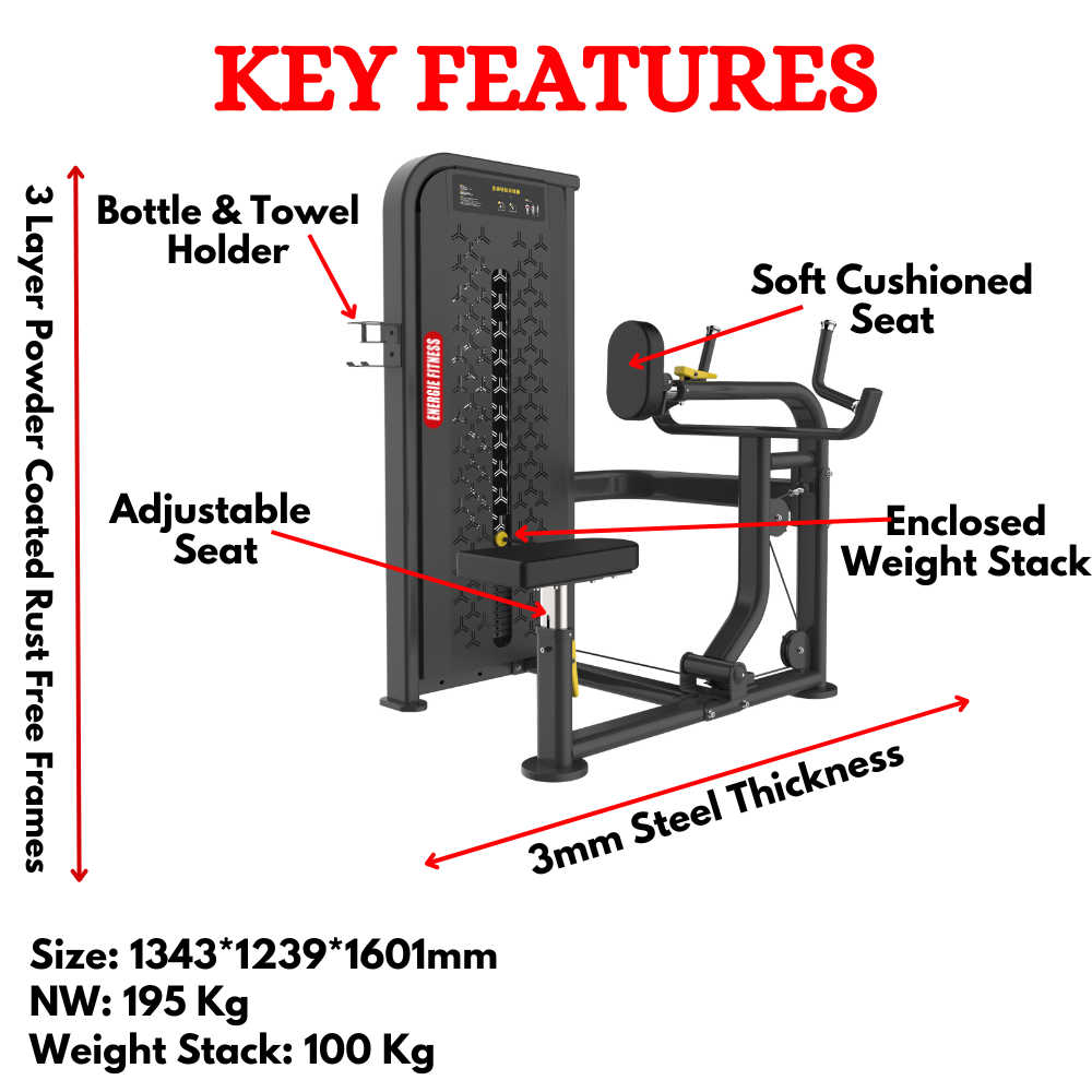 Energie Fitness seated cable row machines have a heavy gauge design and a solid metal structure to withstand the pressure of back-to-back training in commercial gyms.