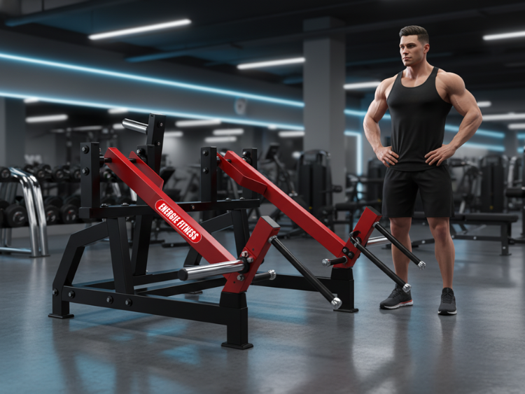 A plate-loaded shrug machine targets upper traps for strengthening and muscle building. With adjustable weight options, it provides an effective, controlled shrug exercise, perfect for enhancing shoulder and neck strength.