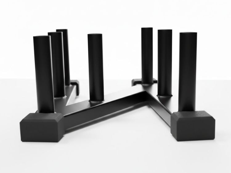 This is a space-optimized gym product that helps to organize the space by accommodating multiple rods in one. It helps to keep the rods organized and in place.