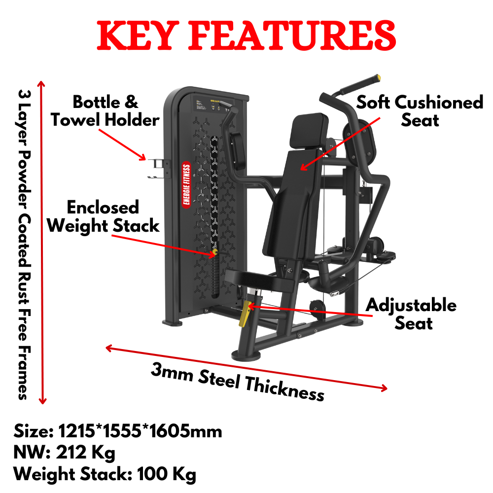 Energie Fitness butterfly workout machine has a robust construction that has been specifically engineered to meet the requirements of heavy workouts in commercial gyms.