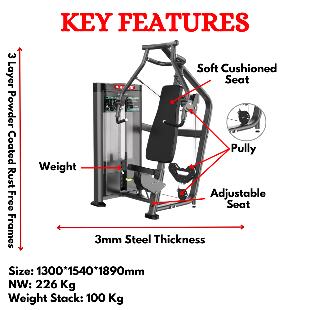 Energie Fitness ESB-01 chest press machine is an industrial-grade product that has been made out of heavy-duty metal to provide stability and strength for back-to-back training sessions.