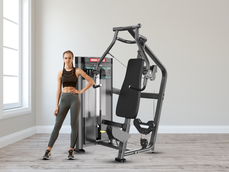 Chest equipment for the gym includes machines like chest press and pec deck, designed to build strength, enhance muscle definition, and improve upper-body endurance with controlled resistance and smooth motion.