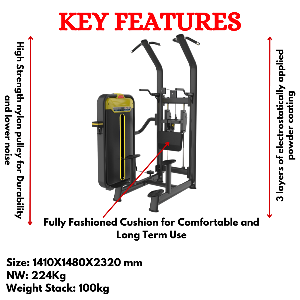 This chin up machine exercise staple Is built to last longer with a unique powder coating. The triple layer of electrostatic powder coating used on this gym machine reduces the chances of corrosion and keeps the equipment safe from frictional abrasions.