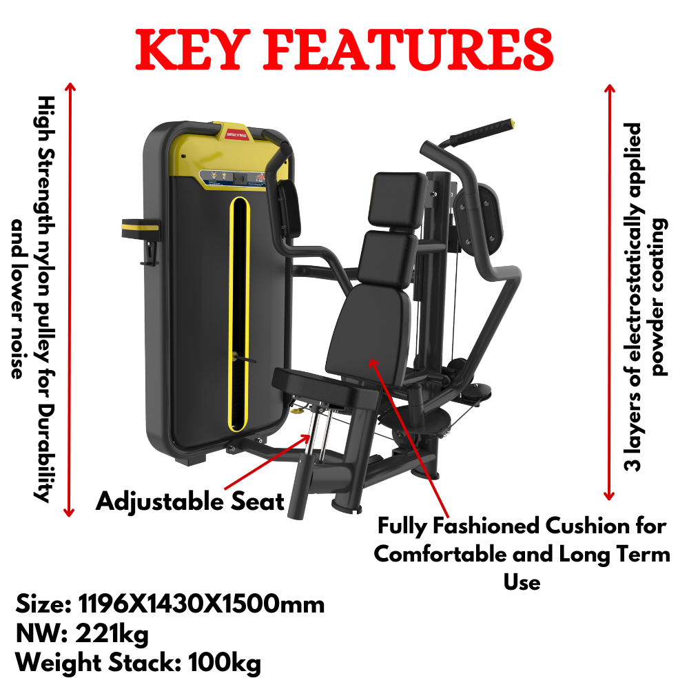The other brand chest machine butterfly models, our machine has a sound operation with its premium finish. The well-lubricated nylon cables and other mechanisms add consistency to upper body training and make it noiseless.