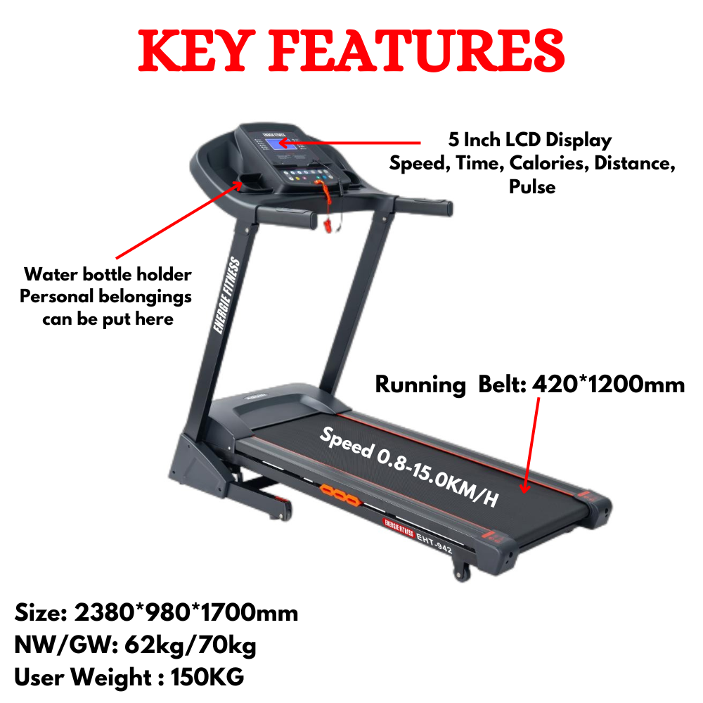 EHT-942 is the best treadmill for home gyms from our treadmill range because it has user-friendly features to make workouts comfortable and easy for users. With the cutting-edge features of this equipment, users can easily work out without the guidance of a trainer at home.