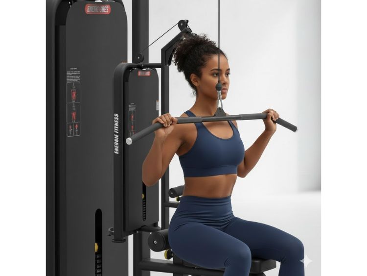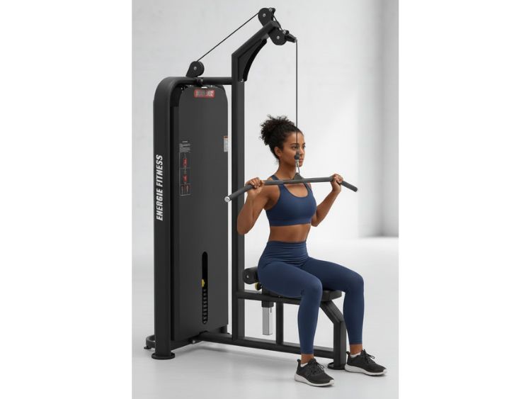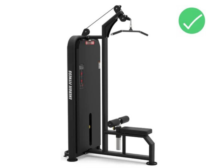 Energie Fitness lat pulldown machine with weight stack has different exercise options that match the preferences of all training levels. Users can engage in isolated training, muscle development, and muscle strengthening workouts with this elaborate training station.