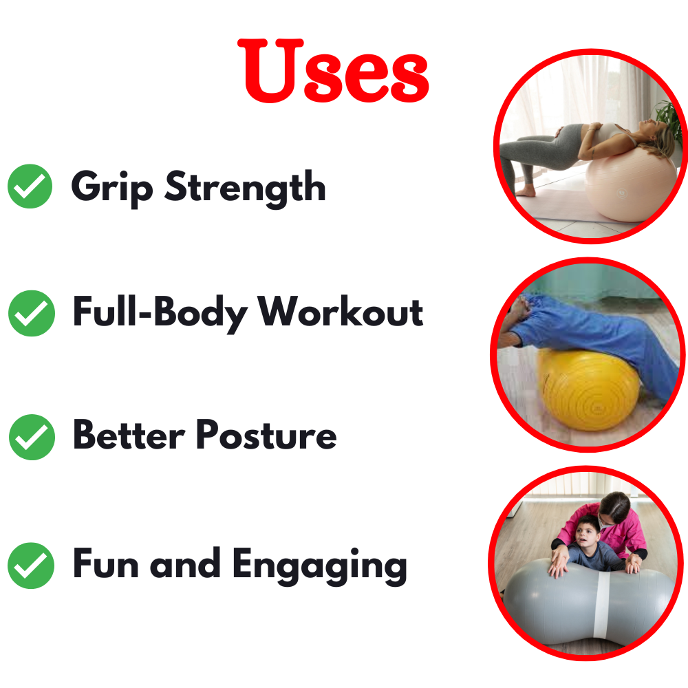 The commercial-grade build quality of this gym ball makes it highly resilient. In addition to providing complete support for workouts, this equipment can be used back to back without chances of tearing off due to excessive use because it has immense tensile strength and elasticity.