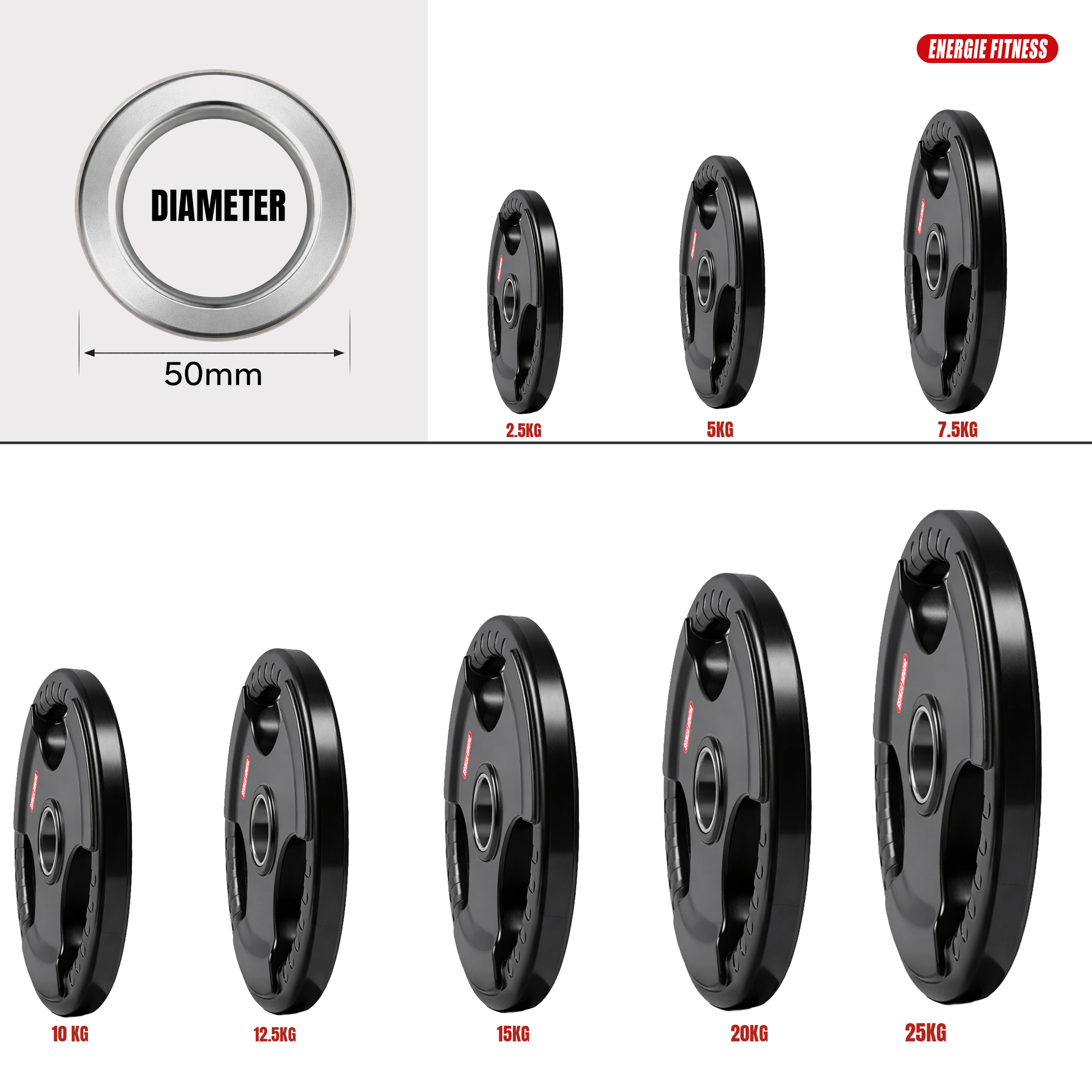 Energie Fitness 3 cut finger plates have been crafted out of premium quality cast iron that provides stability for workouts and enhances the training levels of users. It is due to the study quality that these weight plates last longer even after rigorous use.