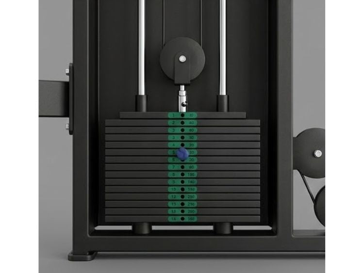 ETB-17 Functional Trainer has a robust finish with a sturdy frame built for exceptional durability. Its strategic design is tailored to withstand rigorous training, making it the ideal choice for gyms.