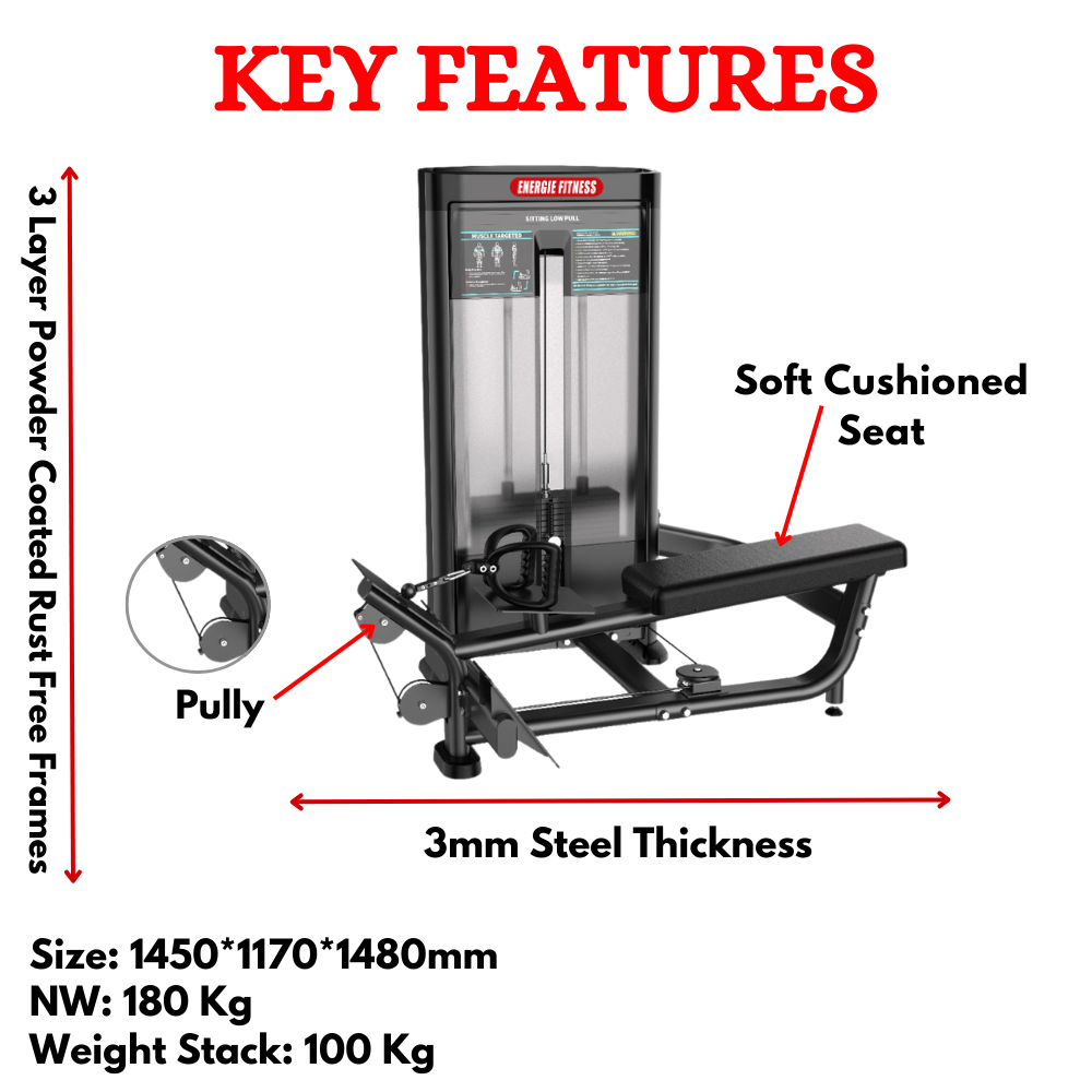 Our long pull row exercise machine has dependable cables with adequate lubrication to deliver frictionless motion. While the ideally padded seats of the machine minimize the impact of jerks on the body and helps individuals to train safely with lesser chances of getting sore muscles.
