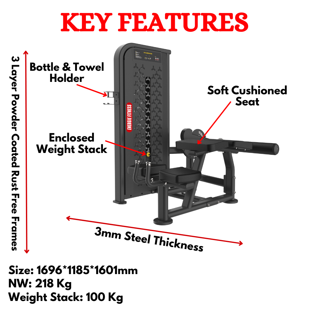 This lying leg curl machine has a very adaptive design not only in terms of its angle adjustments but also with its weight capacity. The 100kg pin loaded weight stack provided in this equipment can be set to a custom capacity by users according to their requirement.