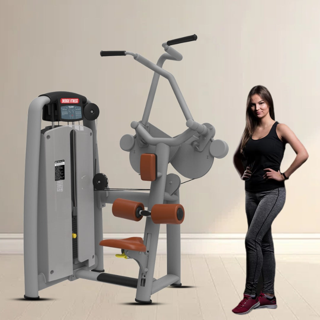 Energie Fitness's pull down workout machine has a strong structure to clear the extensive pressure of workouts in community gyms. Its structure is made with solid raw materials for durability and stability.