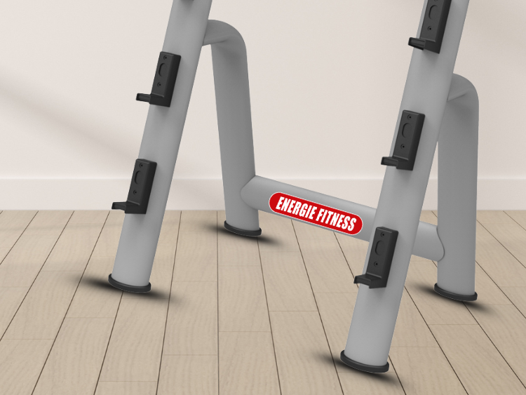 Energie Fitness barbell storage rack is the most dependable setup in terms of its strength and stability. It is made of industrial-grade steel that can easily bear heavy weights.