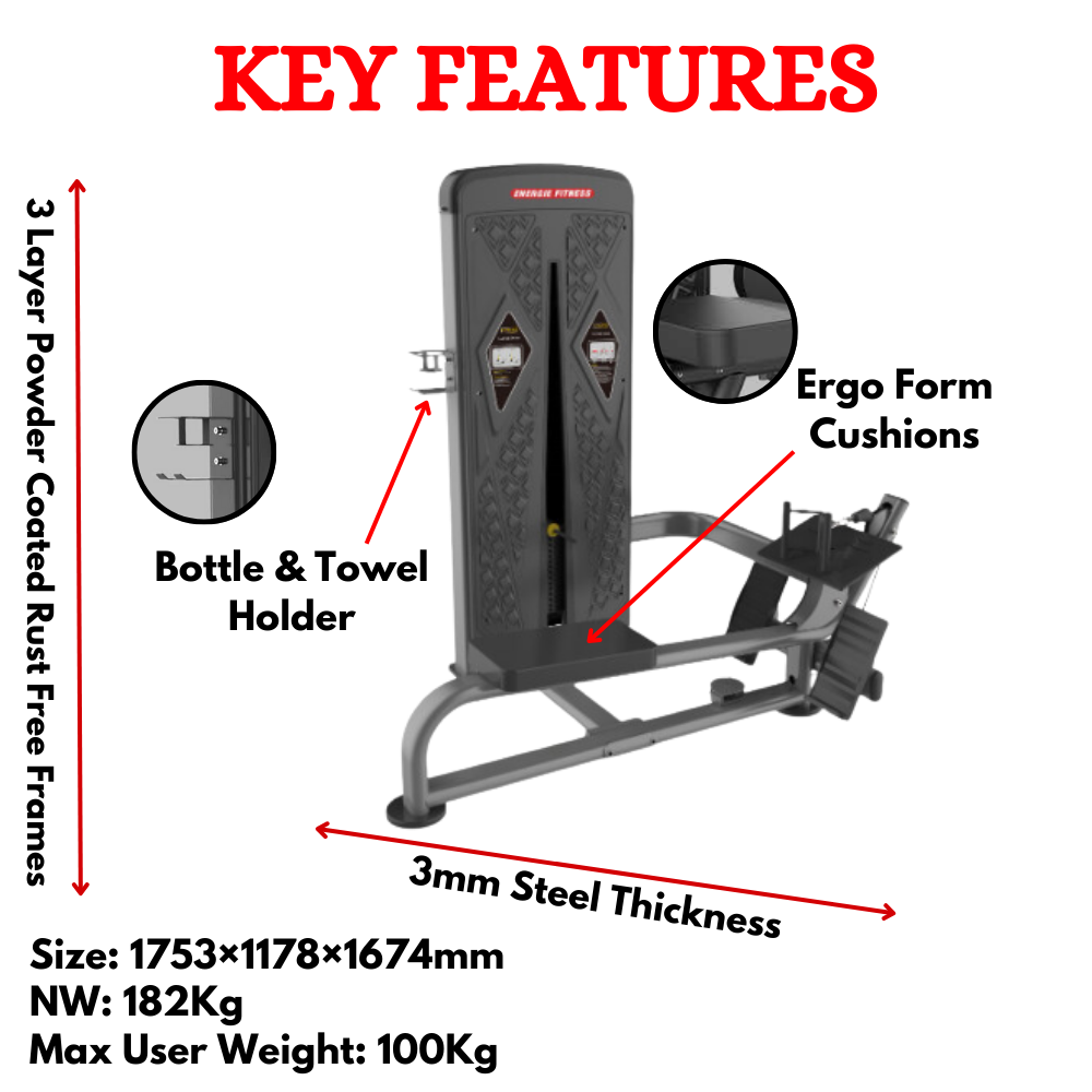 Energie Fitness Seated Horizontal Pulley Machine is an essential training setup with a cutting-edge design that enhances workout regimes by making them precise and comfortable.