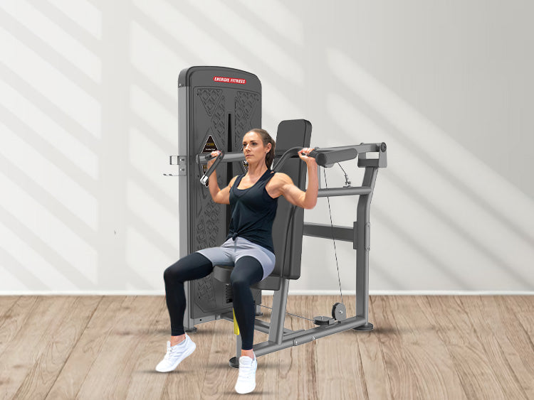 Energie Fitness gym machine for shoulder has a robust and heavy-duty frame design crafted with solid metal. It can endure the pressure of back-to-back and hectic training routines in gyms.