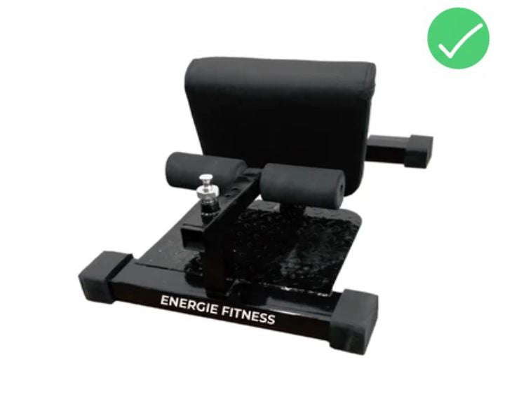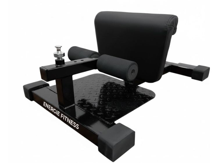 Energie Fitness Sissy squat exercise machine comes with adjustable seat and roller options to accommodate users from different fitness levels. It ensures custom user comfort and helps maintain the correct form for strenuous exercises.