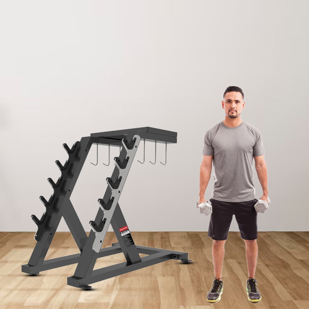 This versatile rack for gym handles has more storage than any other regular rack.Ā It has different storage sections which help you to organize your weight according to the size or type. Thus, it helps keep your gym space cleaner.