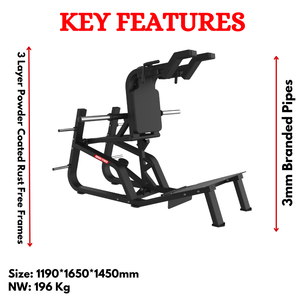 Our v squat machine for sale has an anti-skid design which makes it suitable for individuals who are getting started with their fitness. From its count to the balanced mainframe to the textured foot plate, everything has been designed to provide stability for leg muscle workouts.